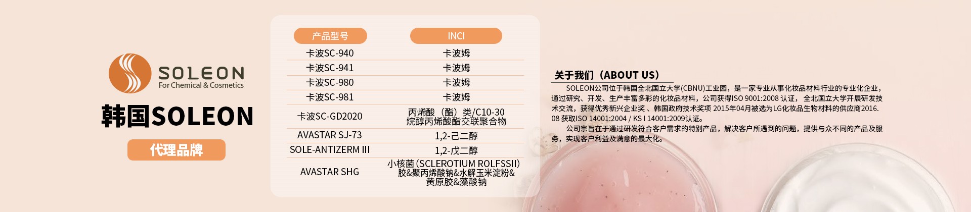 樂梵覓(廣州)國(guó)際貿易有限公司位于廣州民(mín)營科技(jì)園中的敏捷科創中心,是一(yī)家緻力于提供全球優質化妝品原材料代理的國(guó)際貿易公司,代理品牌:馬來西(xī)亞甲洞集團 (KLK OLEO)、韓國(guó)(SOLEON CO.,LTD)日本日美(SUN BEAUTY)。合作品牌:印尼金光(guāng)、韓國(guó)韓侬等。公司設有實驗室,與多(duō)家國(guó)内外公司技(jì)術(shù)探讨,深入了解行業(yè)最新動态,為(wèi)客戶提供最新的市(shì)場信息。近幾年(nián)随著(zhe)公司的逐步擴展,積累了豐富的市(shì)場經驗和市(shì)場資源,在建立行業(yè)良好的合作口碑同時,保持原有進口原料規模增長(cháng)的基礎上(shàng),做好産品延伸,推動更全面、穩健地發展。我們堅持以産品質量為(wèi)生(shēng)命、代理品牌為(wèi)動力、創新為(wèi)發展的經驗理念,為(wèi)客戶創造價值,搭建最佳、最穩定的供貨渠道,攜手共建美好未來!